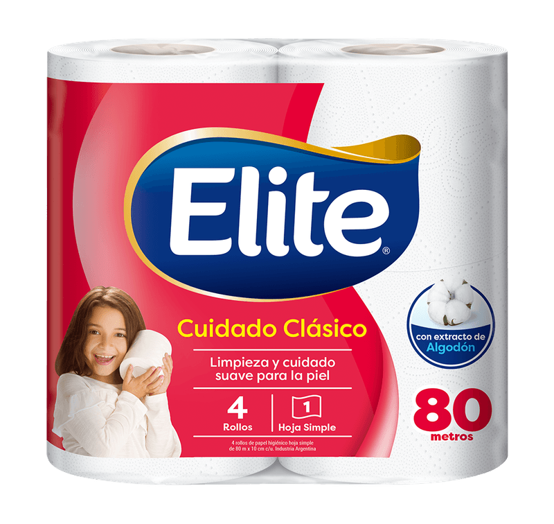 Papel higiénico Elite Cuidado Clásico hoja simple 80 m 4 un